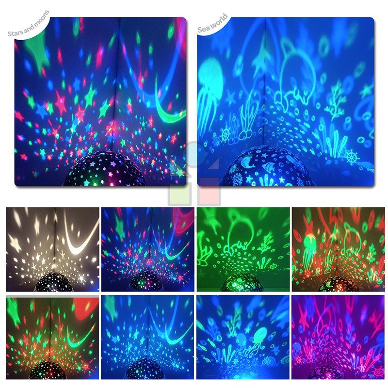 Dream Rotating využíva farby modrú, červenú, zelenú a bielu na vytvorenie nádhernej projekcie na steny a strop, čím vytvára realistickú hviezdnu nočnú oblohu alebo podmorský svet oceánu (čo zaisťuje odnímateľný filter, projektor obsahuje 2 filtre nočnú oblohu alebo podmorský svet). Poskytne relaxačnú a romantickú atmosféru. Stimuluje predstavivosť detí a pomáha im rýchlo a ticho zaspať.