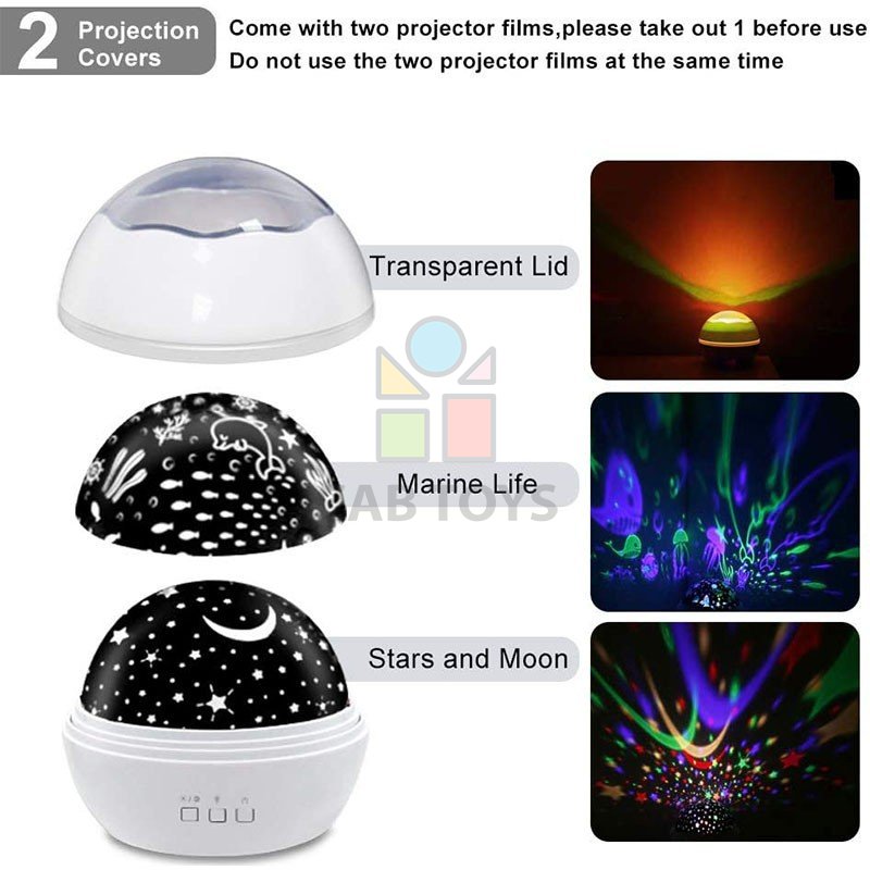Dream Rotating využíva farby modrú, červenú, zelenú a bielu na vytvorenie nádhernej projekcie na steny a strop, čím vytvára realistickú hviezdnu nočnú oblohu alebo podmorský svet oceánu (čo zaisťuje odnímateľný filter, projektor obsahuje 2 filtre nočnú oblohu alebo podmorský svet). Poskytne relaxačnú a romantickú atmosféru. Stimuluje predstavivosť detí a pomáha im rýchlo a ticho zaspať. viac