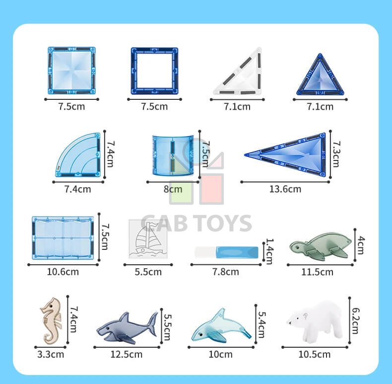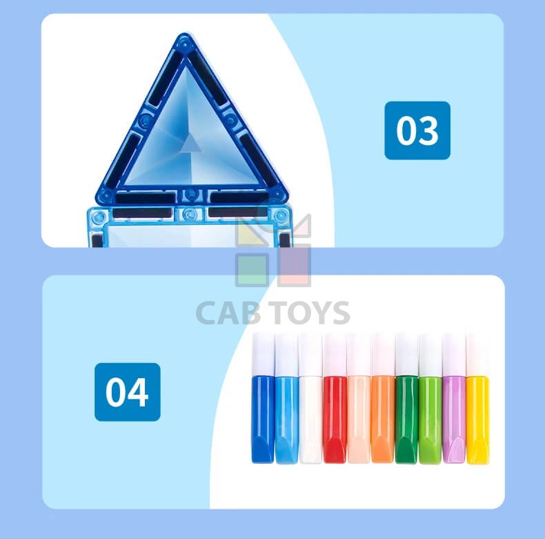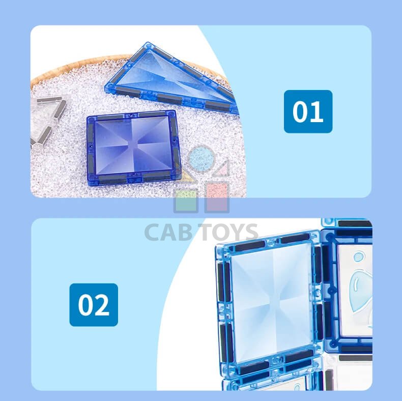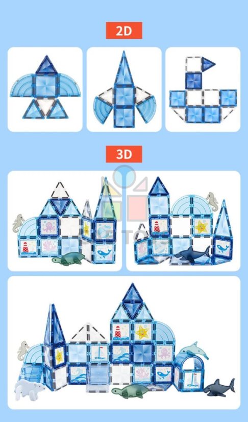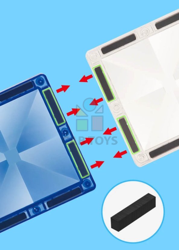 Všetky dieliky sú vyrobené z netoxických materiálov, ktoré sú bezpečné pre deti. Silné magnety zaručujú pevnosť konštrukcií, zatiaľ čo mäkké hrany sú šetrné k detským ručičkám.
